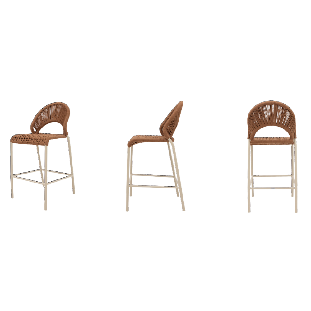A Banqueta Belize combina estrutura com alumínio e corda em um design orgânico e fluído. Suas formas suaves criam uma peça leve e acolhedora, ideal para compor ambientes contemporâneos com naturalidade e elegância.