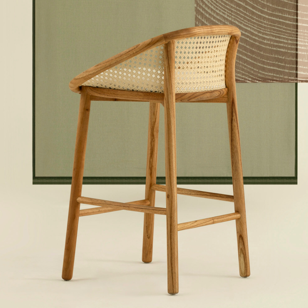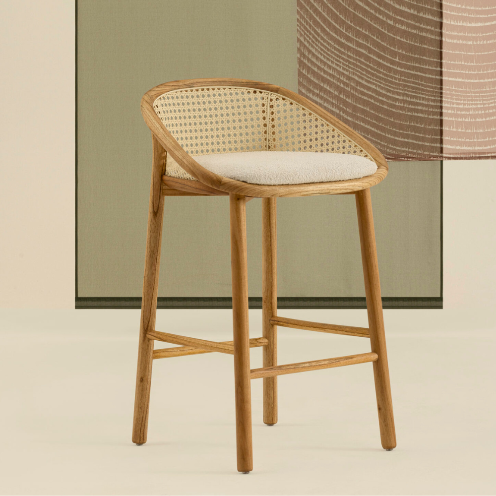 A Banqueta Flor tem a madeira como protagonista: ela entra na composição de modo suave e bem curvilíneo – uma característica muito presente no trabalho dos designers da Lattoog. Com um espaldar que apoia a lombar, a banqueta busca trazer um maior conforto para uma tipologia de móvel que muitas vezes carece disso.