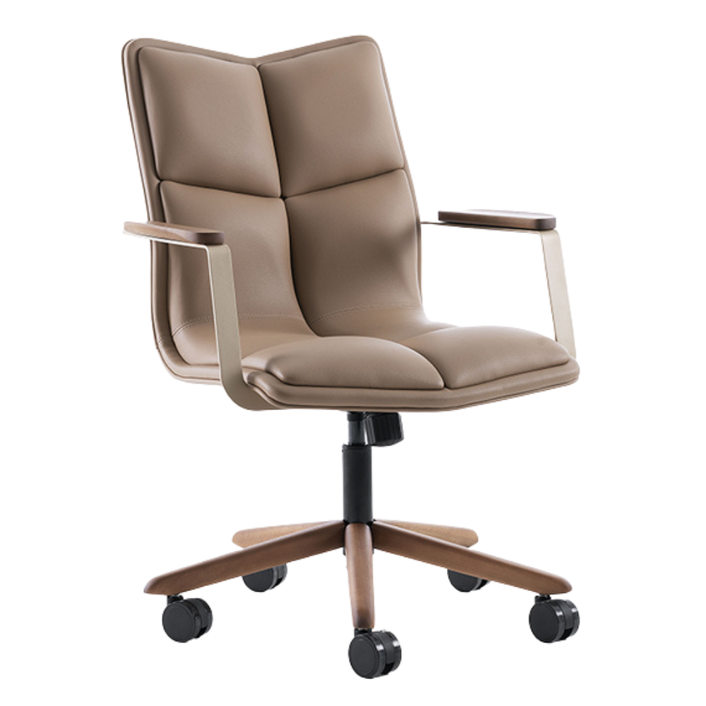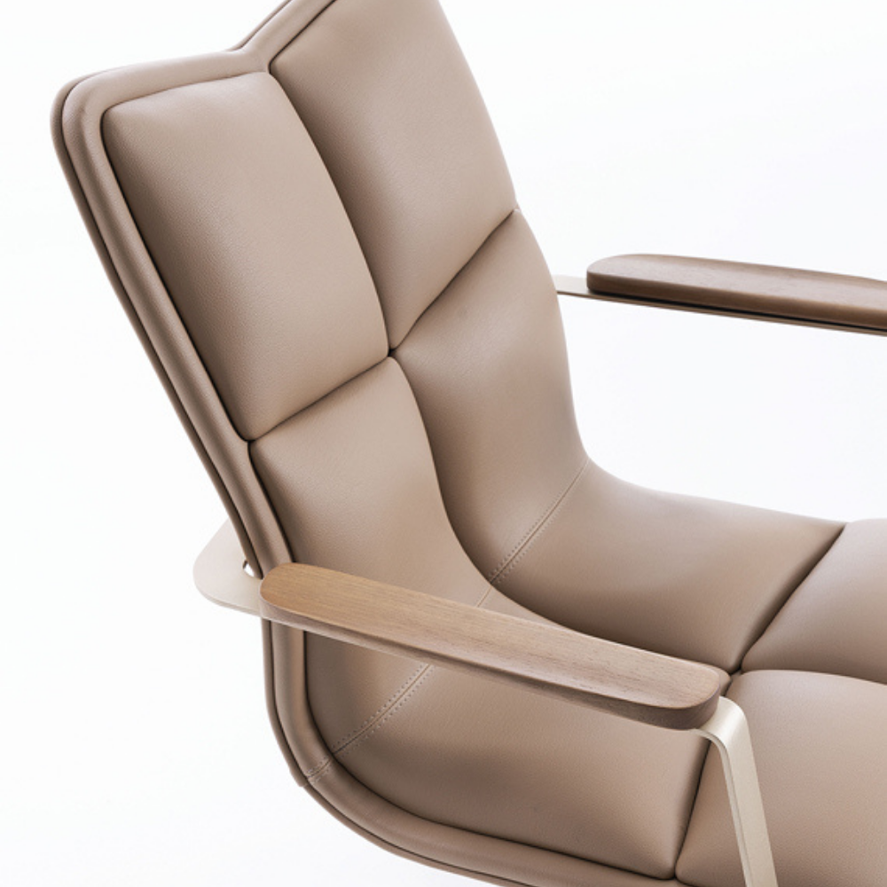 Na anatomia, o áxis é a segunda vértebra cervical, crucial para o movimento da cabeça. O nome sugere suporte central, equilíbrio e flexibilidade, com uma sonoridade moderna e poderosa. A cadeira Áxis, disponível em versões alta e baixa, integra harmoniosamente diferentes elementos. Seus braços em metal com contornos delicados criam um contraponto equilibrado e preciso com o calor e a presença da madeira nos detalhes. O estofado, com seus marcantes gomos, adiciona ainda mais personalidade à peça.