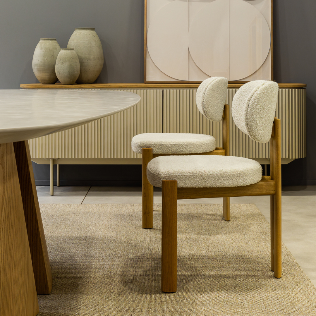 A cadeira Blanca é o equilíbrio ideal entre elegância e bem-estar. Com um design diferenciado e ergonomia pensada para longas horas de uso, essa peça traz estilo e conforto para sua sala de jantar.