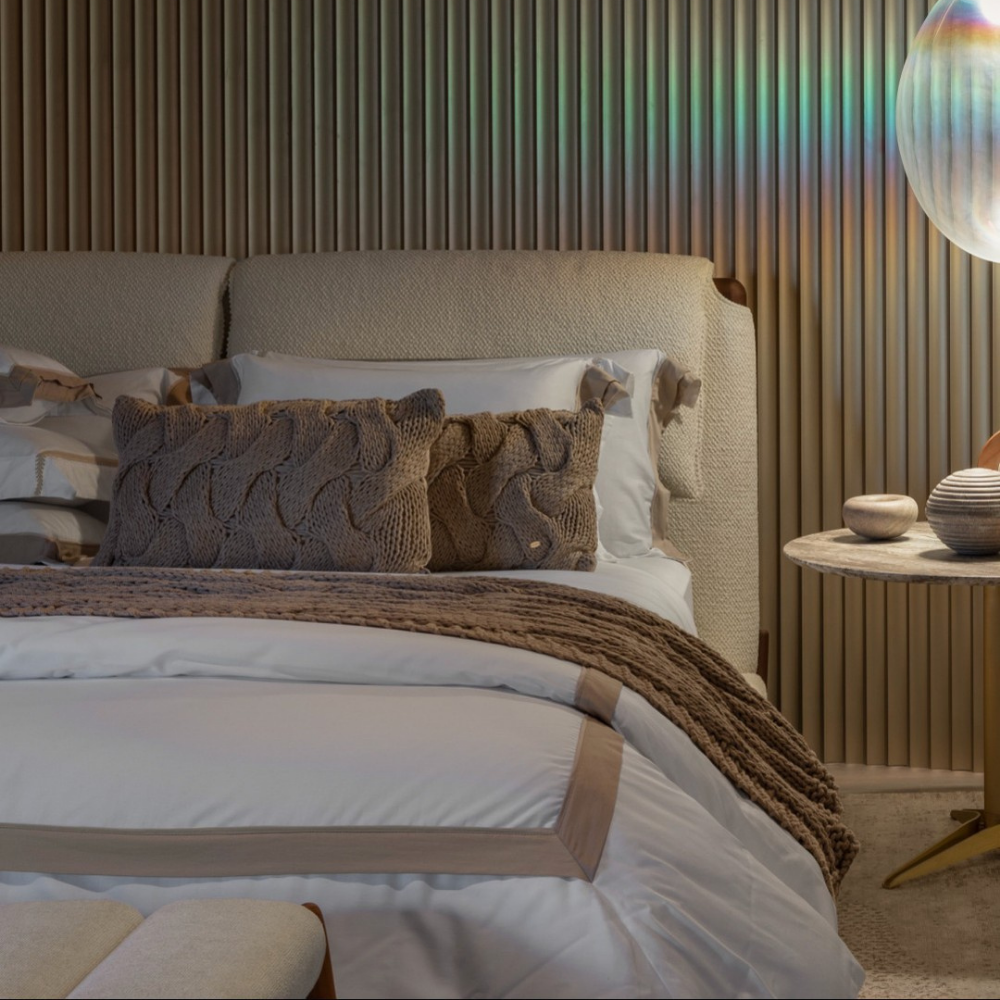 Charme e sofisticação são os destaques da Cama Elbow, sua estrutura estofada dá ênfase aos detalhes em madeira maciça que sobressaem e protegem um visual de total harmonia, possibilitando ser uma peça destaque de qualquer dormitório.