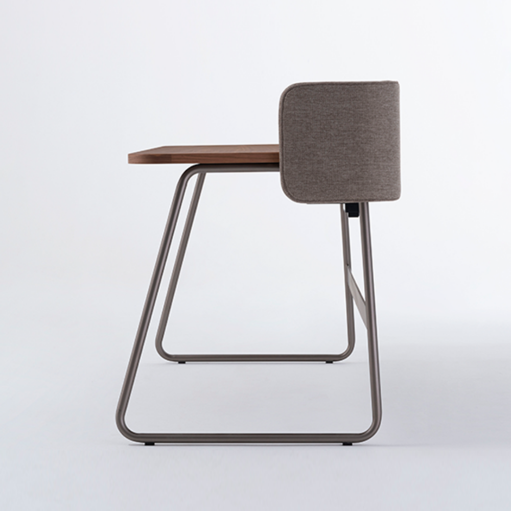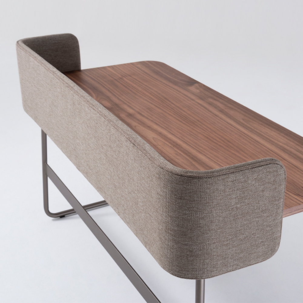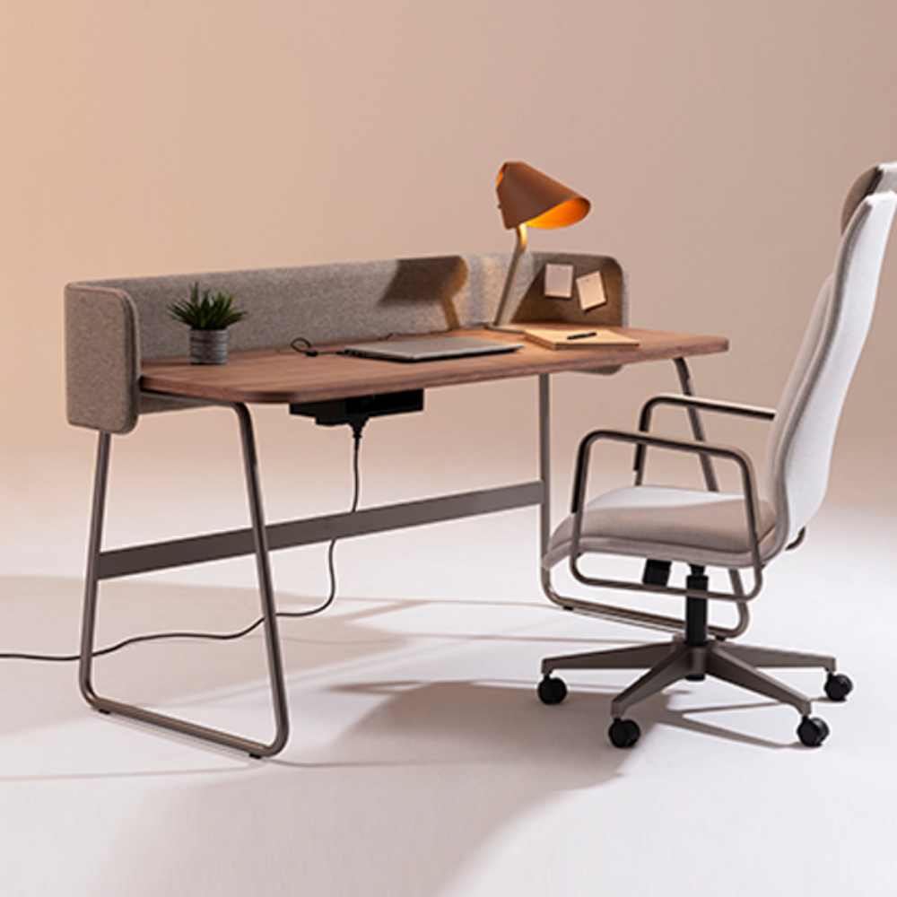 Com inspiração no estilo urbano, a escrivaninha Urban busca criar ambientes originais sem perder a elegância, combinando o metal pintado com o tampo amadeirado. O destaque fica por conta do detalhe estofado que possibilita a composição de materiais e traz privacidade para o ambiente de trabalho.